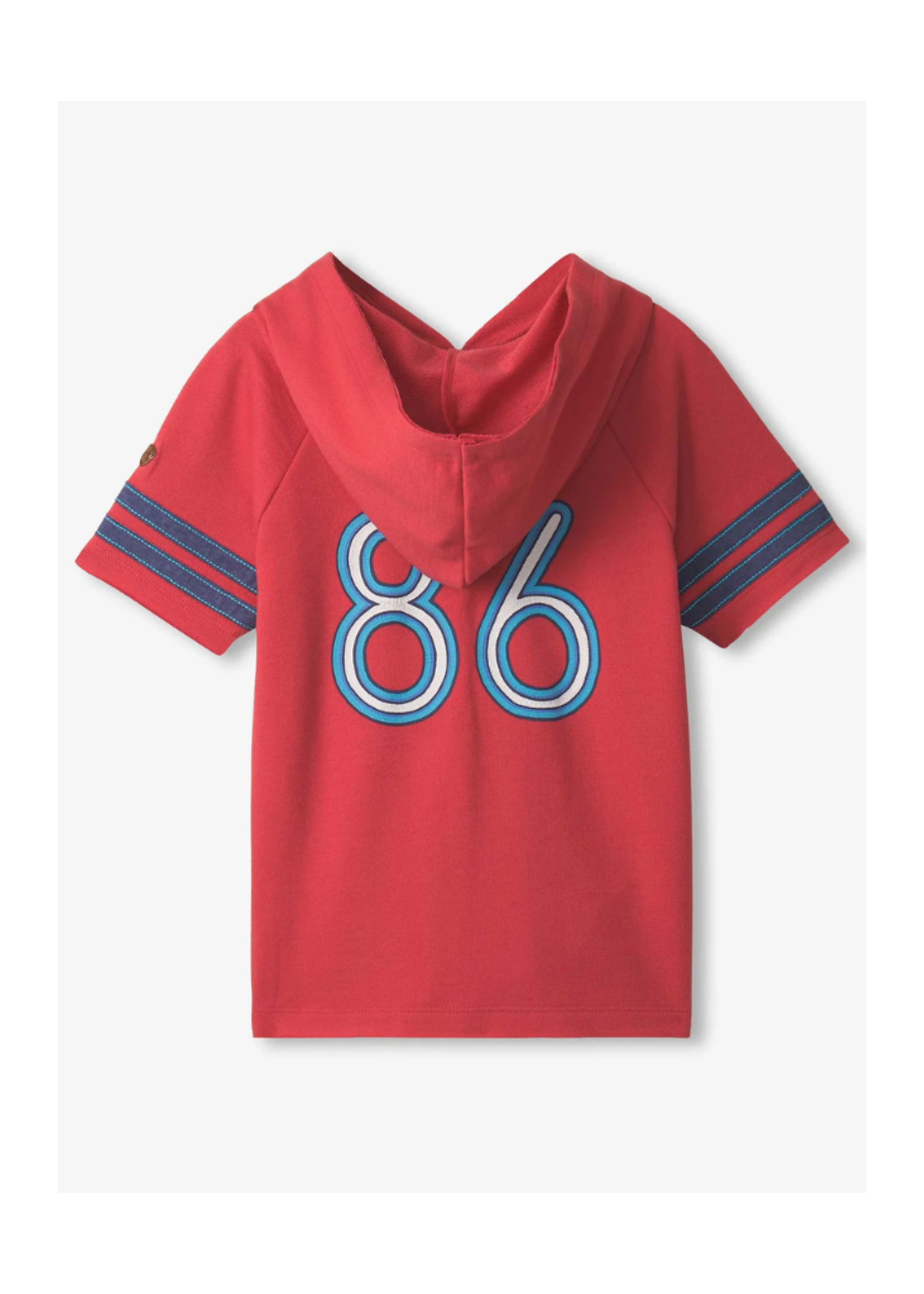 The Boys Jersey Number Raglan Hoodie Tee is sporty and stylish! Crafted from a soft cotton-polyester blend, this hoodie tee features bold jersey numbers for a fun, athletic vibe. Lightweight with a hooded design, it’s perfect for layering on cooler days. Great for school, playdates, or weekend adventures!