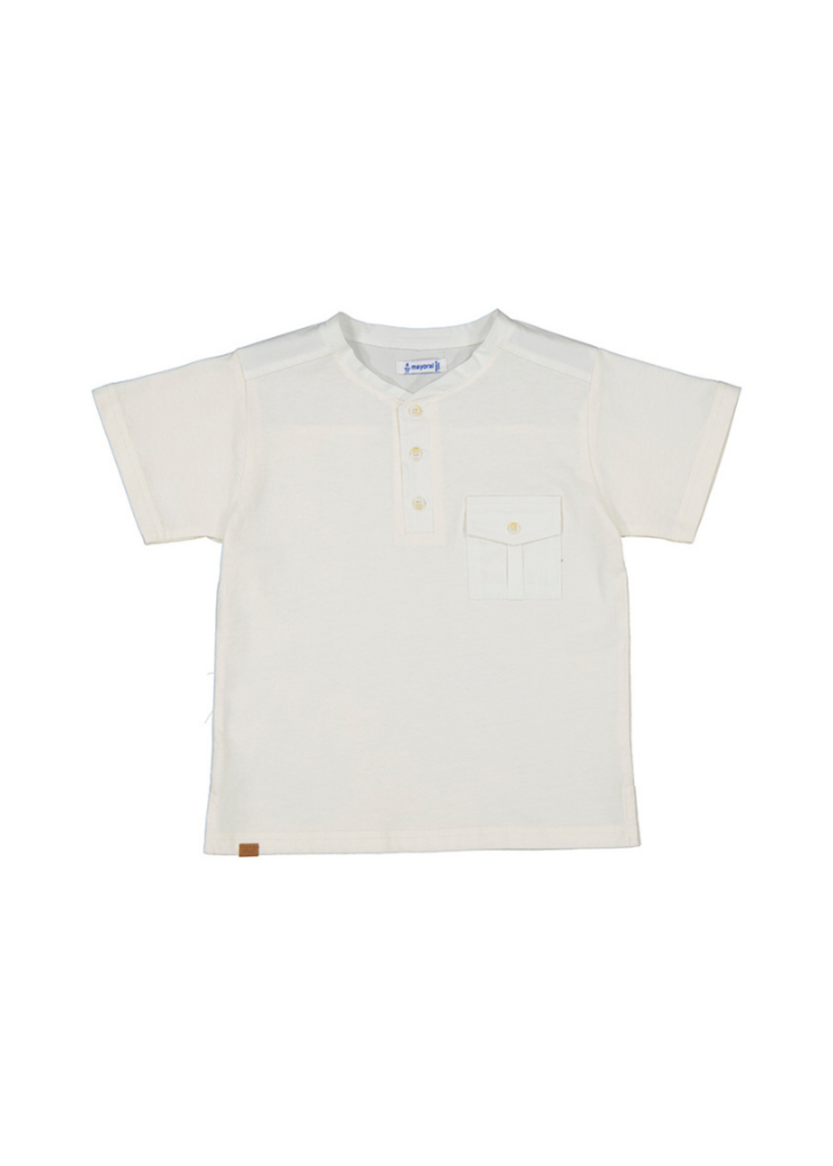 The Miles Top is a short sleeve, henley t-shirt that features an accent front pocket.